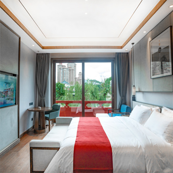 廣元鳳臺(tái)國(guó)際酒店是隸屬于廣元市文化旅游康養(yǎng)發(fā)展集團(tuán)有限公司的一家國(guó)有企業(yè)高星級(jí)酒店,是廣元地區(qū)最大規(guī)模的生態(tài)園林酒店,酒店坐落于南河湖心島,亭臺(tái)樓閣,依附于江河之畔,點(diǎn)綴于園林之中,環(huán)境清新幽雅,大寫(xiě)之景氣勢(shì)磅礴,細(xì)微之處獨(dú)具匠心,外觀(guān)建筑采用盛唐風(fēng)格,以濃郁的女皇歷史為背景,襯托出廣元獨(dú)有的文化特色,并享有“萬(wàn)頃綠波涌翠島,瓊樓涌現(xiàn)綠樹(shù)中。細(xì)柳低垂拂玉岸,腳踏彩云花中行!钡拿烙,如詩(shī)如畫(huà)。實(shí)為川北地區(qū)高星級(jí)酒店之一。200間(套)舒適、精致的豪華、行政客房,包括商務(wù)大床、雙床房,豪華大床、雙床房,行政大床、雙床房,豪華、行政套房等。